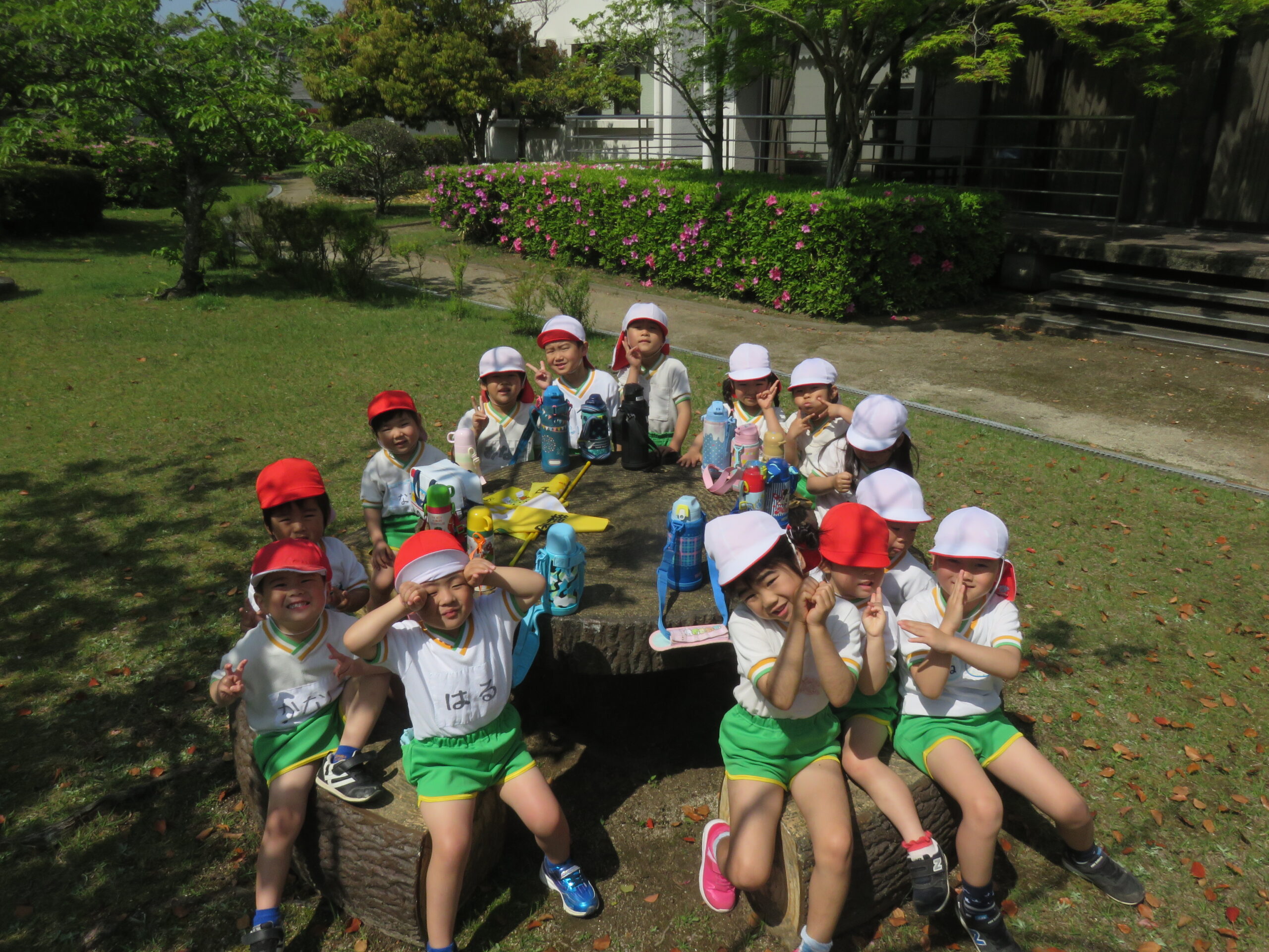 愛情弁当を持って春のお散歩遠足はワクワクがいっぱい。到着するなり「お弁当たべたーい!」と。(笑)たくさん遊んで、お弁当もパクパク完食のみんなでした。